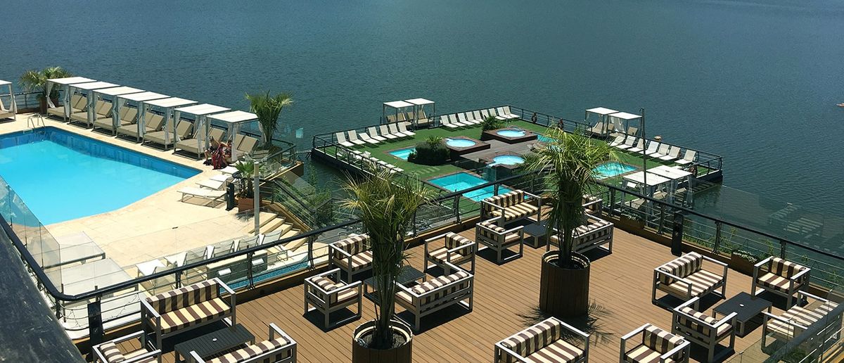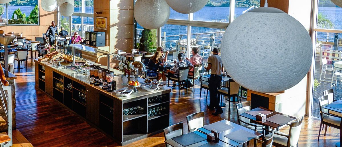 All rooms include: continental breakfast, gym, heated indoor and outdoor pools, tennis courts, five-a-side football pitch, putting green, games room, boat dock with lake access, lake and mountain viewpoints, 24-hour security, telephone with international and national direct dialing, and tourist information. Rooms have Wi-Fi access. Rooms are adapted for guests with disabilities and have been completely renovated. Additional services include: a floating restaurant, bar, restaurant, room service, airport transfers, spa and relaxation area, excursions, water sports (excluding fuel, as per Decree No. 491), horseback riding, taxis, car rental, bicycle rental, and babysitting. Conference rooms are available (capacity 100 to 800 people).